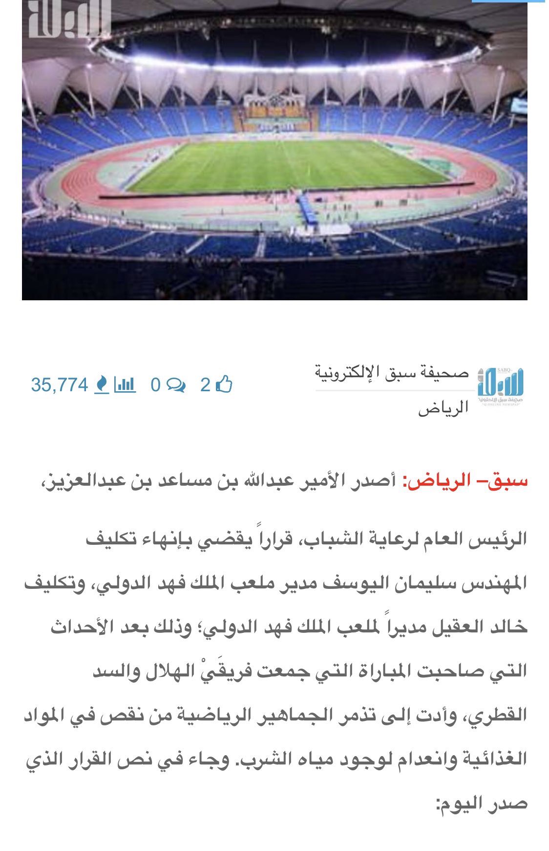 آينشتاين النصر On Twitter سابقا ولأن المتضرر كان جمهور الهلال تم اقالة مدير استاد الملك فهد الدولي من الرئيس الهلالي السابق عبدالله بن مساعد هل يجرؤ رئيس الهيئة خلال الأيام القادمة